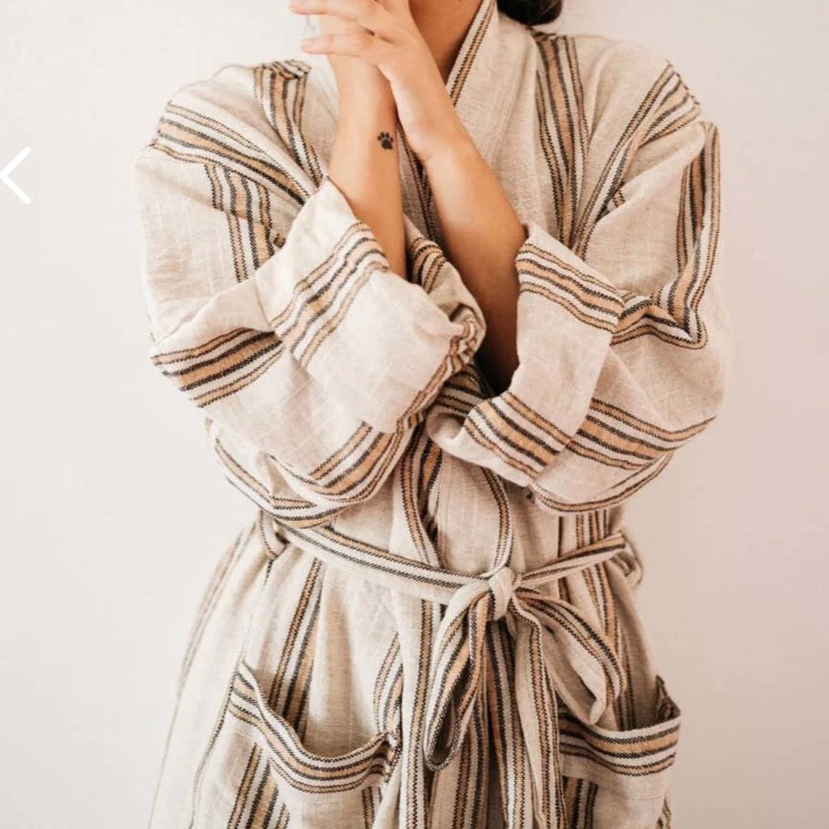 Badekåbe i luksuriøs hurtigttørrende blanding af økologisk bomuld og hør. Det smukke tekstil er håndvævet på århundrede gamle væve og lavet til at holde hele livet.