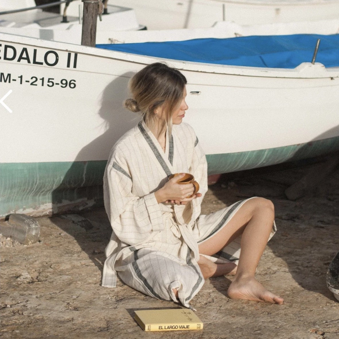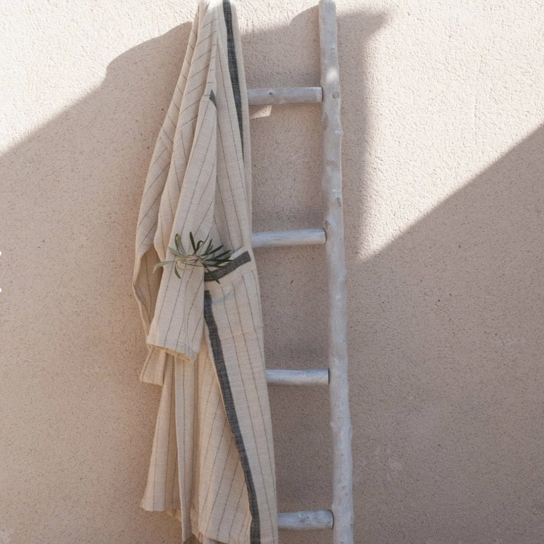 Badekåbe i luksuriøs hurtigttørrende blanding af økologisk bomuld og hør. Det smukke tekstil er håndvævet på århundrede gamle væve og lavet til at holde hele livet.