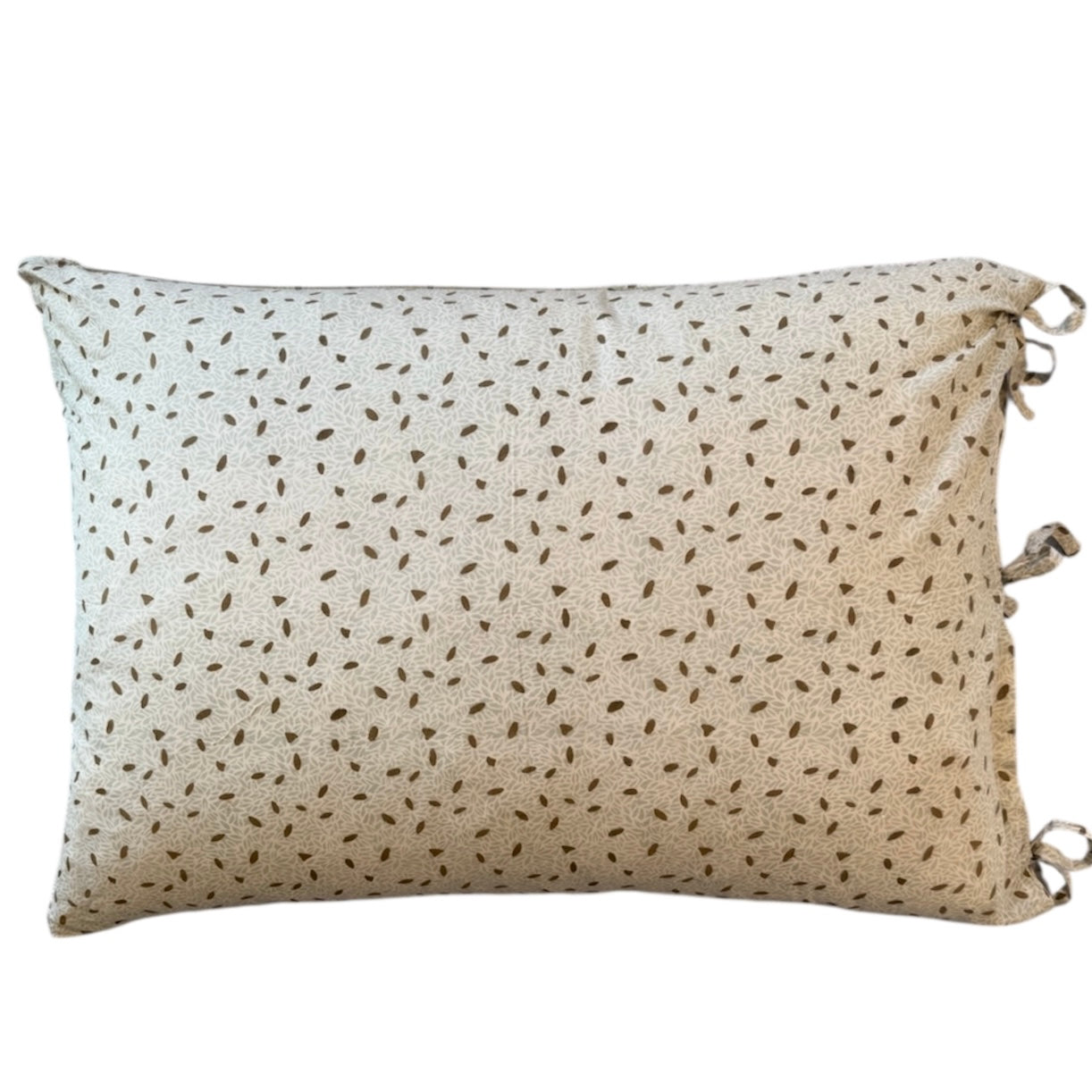 Pude fra Le Monde Sauvage i håndtrykt, blokprintet bomuld lukkes med bindebånd i siden.