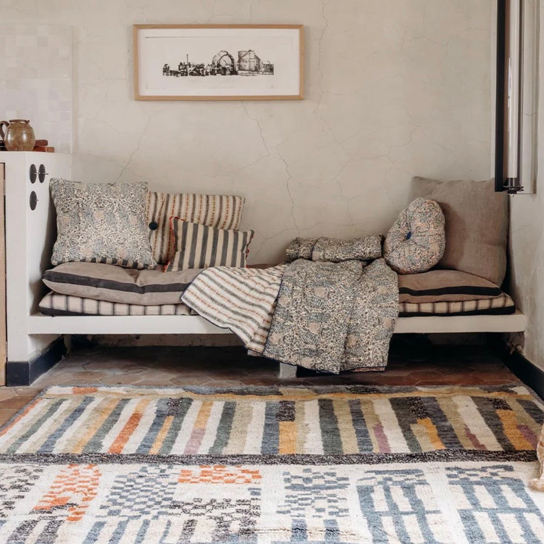 Tæppet håndlavet med bloktryk.