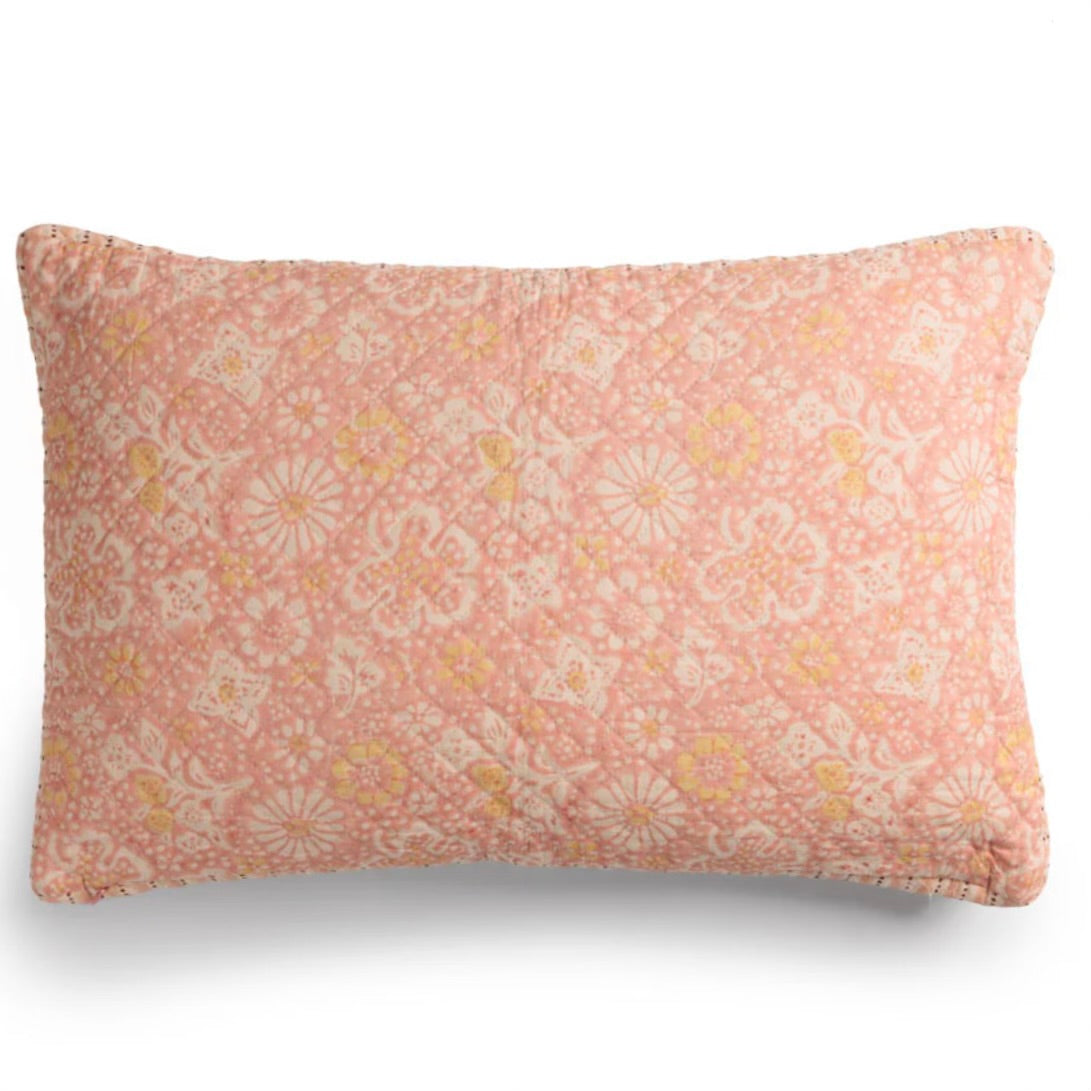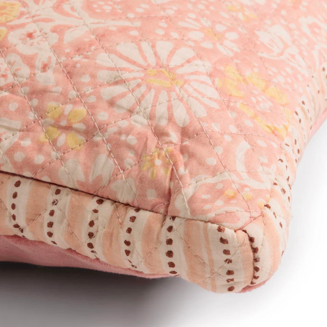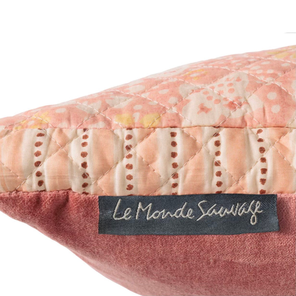 Trés chic. Yuki Goa pude er vendbar. På den ene side en lækker bomuld i enkelt blomstret mønster i rosa toner og på den anden side en lækker rosa velour. Puden har en elegant kant i blokprint. En yderst eksklusiv pude fra Le Monde Sauvage.