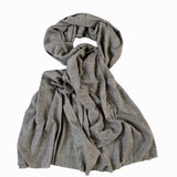 Et let og smukt tørklæde i en naturlig, meleret lys grå farve, der kan bruges både som tørklæde og sjal. Cashmere og uld har en særlig evne til at tilpasse sig og ikke være for varmt om sommeren, men lunt om vinteren. Hav altid et pashmina-tørklæde klar i tasken til at beskytte mod kulde, varme og træk. En ægte "life saver", når du er på farten.