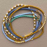 Sæt med 5 armbånd, fremstillet på holdbar og fleksibel elastiksnor. Passer på håndled i medium størrelse (16 cm).