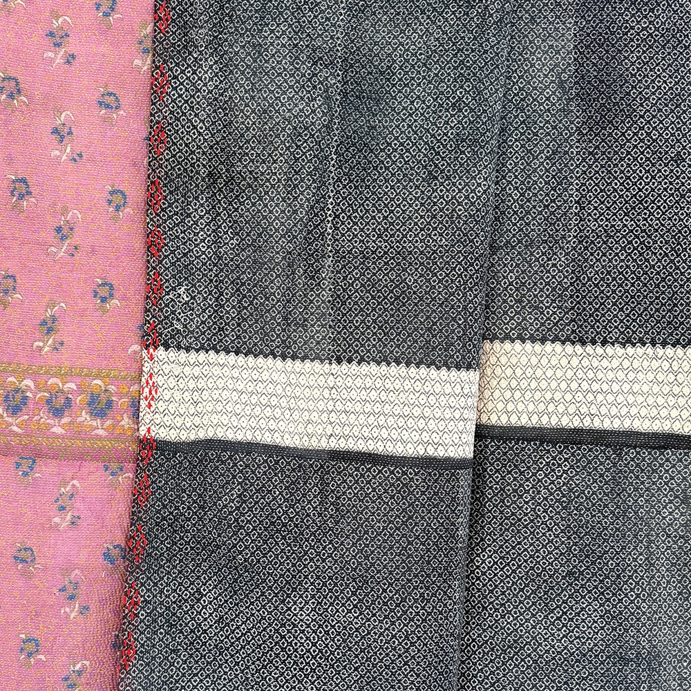 Saritæpper er vintage / up cycled og fremstår med patina. Små lapper og reparationer er en del af tæppernes charme og personlighed. Tæpperne er forskellige på de to sider, og du får to tæpper i et med disse smukke saritæpper.